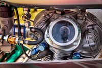 Koningsas aandrijving van de bovenliggende nokkenas van een Ducati eencilinder racer