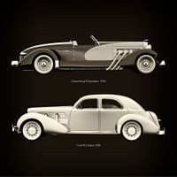 Voor de liefhebber van oude klassieke auto's is deze combinatie van een Duesenberg SJ Speedster 1933 en een Cord 812 Sedan 1936 werkelijk een prachtig werk om in huis te hebben.