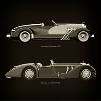 Voor de liefhebber van oude klassieke auto's is deze combinatie van een Duesenberg SJ Speedster 1933 en Mercedes-Benz SSK-710 1930 werkelijk een prachtig werk om in huis te hebben.