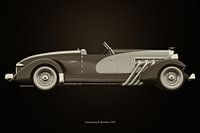 Hier een zwart-witte versie van de Duesenberg SJ Speedster 1933.