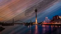 Een Time-slice van de stad Düsseldorf waarin 4 uur in 1 afbeelding te zien is