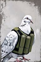 Deze unieke kunstprint toont een verrassende combinatie van een vredige duif in een militaire outfit, geïnspireerd door de stijl van de straatkunstenaar Banksy. Het kunstwerk speelt met contrasten: de symboliek van een vredesduif tegenover een militaire uitrusting. Perfect voor liefhebbers van moderne en provocatieve kunst, deze afbeelding voegt een vleugje spanning en nieuwsgierigheid toe aan elke ruimte. Met zijn monochrome tinten en subtiele kleuraccenten past het goed in een eigentijds interieur, bijvoorbeeld in een kantoor of woonkamer, en maakt het een interessant gespreksonderwerp voor bezoekers.