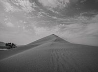 Zwart-witfoto van het duin bij Marais's Point in Soussusvlei, Namibië.