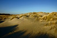 Foto van duinen van Goeree in Ouddorp, Zuid-Holland. Het zand en helmgras steken mooi af bij de blauwe lucht.