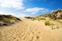 Foto van duinen met zand en helmgras in Ouddorp, Zuid-Holland. De Duinen van Goeree is een natuurgebied langs de Noordzee op Goeree-Overflakkee.