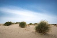 Duingras beweegt in de wind op het strand van het eiland Schiermonnikoog in de regio Waddenzee in Friesland, Nederland.