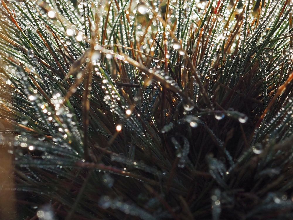 Duingras met dauwdruppels, deze foto omschrijft het gevoel van de herfst (een frisse ochtend, waarbij de zon laag staat)
