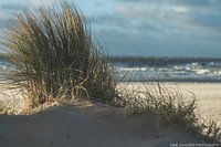 Duingras tegen achtergrond van een onstuimige Noordzee van Anne Zwagers