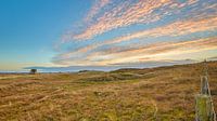 Duinlandschap Julianadorp bij een zonsondergang in de winter met link in het beeld het uitkijkpunt.