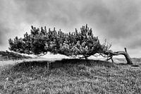 In het duingebied bij Petten (NH) trof ik deze solitaire den. Alleen in het landschap, kromgebogen door de zeewind houdt hij dapper stand.