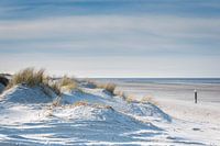 Een frisse plaat van het duinlandschap bij Buren op Ameland. Het uitgestrekte zandstrand in de lentezon geeft een wijdse blik met de zee op de achtergrond.