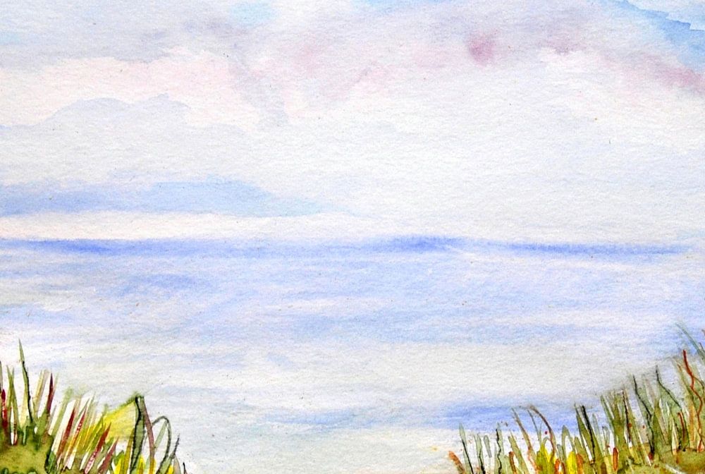 Uitzicht over de duinen aan de Oostzeekust als aquarelverfschilderij