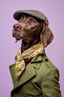 Elegantie ontmoet charme: met een chique kapiteinspet en een modieuze sjaal straalt deze Duitse korthaar Pointer zelfvertrouwen uit. Zijn glanzende, chocoladebruine vacht en alerte, intelligente ogen spreken van dorst naar avontuur en loyaliteit. Achter deze stijlvolle façade schuilt een trouwe metgezel, klaar om de wereld te verkennen.