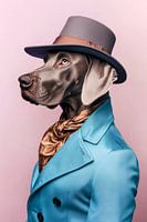 Deze elegante en charmante Duitse Dog schittert in zijn blauwe jas en stijlvolle hoed. Met een verfijnde stropdas en een zelfverzekerde blik die niets onopgemerkt laat, belichaamt hij het toppunt van luxe en gratie. Deze aristocratische viervoeter is klaar om ieders aandacht te trekken - een echte heer op vier poten.