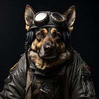 Stap terug in de geschiedenis met onze Duitse Herder, gekleed als een dappere oorlogspiloot met een pilotenpak. Dit kunstwerk vangt de moed van zowel militaire geschiedenis als de trouw van onze geliefde honden. Een unieke weergave van heldenmoed en vriendschap.