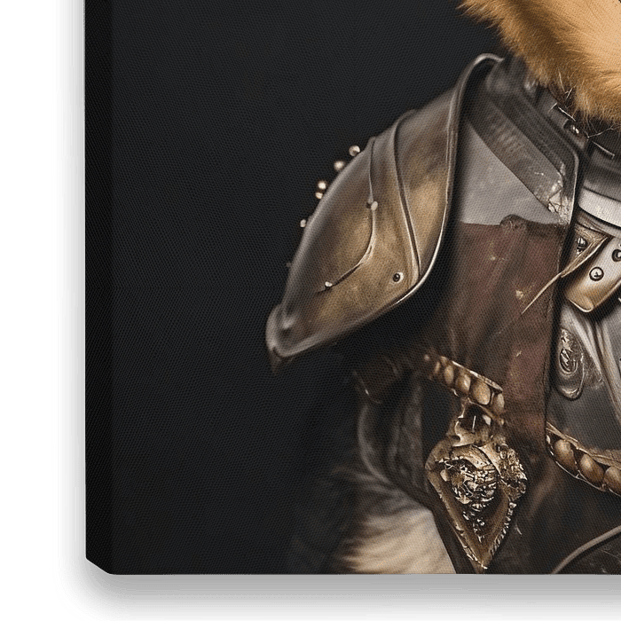Verken de riddersfeer met onze Duitse Herder, getransformeerd tot een middeleeuwse ridder met traditionele kleding en schild. Dit kunstwerk belichaamt zowel de nobele geschiedenis als de trouw van onze viervoetige metgezellen. Een meesterlijke weergave van kracht en loyaliteit in de middeleeuwen en in de tijd van nu.