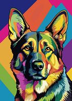 Sterk, intelligent en nobel - de essentie van de Duitse herder is vastgelegd in dit opvallende pop-artportret. Met een gedurfd palet van elektrisch blauw, vurig oranje en neongroen verandert dit werk de trouwe beschermer in een levendig symbool van kracht en bescherming. De zelfverzekerde houding en gefocuste blik worden weergegeven met scherpe lijnen en abstracte vormen, waardoor het kunstwerk een dynamische uitstraling krijgt. Elk detail, van de kenmerkende rechtopstaande oren tot de intense, alerte ogen, straalt moed en loyaliteit uit in een moderne, expressieve visuele stijl.