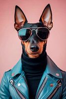 Met zijn kenmerkende, spitse oren en scherpe blik belichaamt de Duitse Pinscher stijlvolle elegantie en onweerstaanbare charme. In een stoer leren jasje en een trendy zonnebril straalt hij zelfvertrouwen uit en doet hij elke hondensalon verbleken. Een echte trendsetter die zowel trouw als beschermend is - gewoonweg onweerstaanbaar.