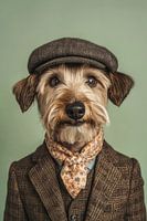 Met een charmante hoed, een stijlvol pak en een speelse sjaal straalt deze Duitse waakhond evenveel elegantie als karakter uit. Zijn grote, expressieve ogen en zachte, pluizige vacht nodigen je uit om hem te knuffelen - perfect voor een aristocratisch avontuur op het platteland! Een echte heer onder de honden.