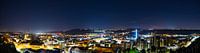 Duitsland, XXL panorama van sterrenhemel nacht over moderne gebouwen van swabische middeleeuwse stad esslingen am neckar, luchtfoto boven de verlichte huizen en daken bij nacht