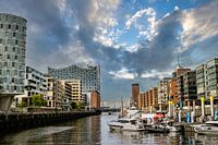 Duitsland Hamburg Hafencity met Elbphilharmonie en bewolking