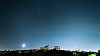 Duitsland, Stuttgart, Juli 2020, Komeet neowise boven skyline en televisietoren fernsehturm van stuttgart stad bij nacht