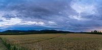 Duitsland, XXL panorama van landelijke tarwevelden in warm zonsonderganglichtadventure-photos Duitsland, Rode zonsondergang hemel en verlichte skyline van freiburg im breisgau panoramaadventure-photos