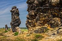Teufelsmauer Weddersleben - uitzicht van de Königsstein naar de Mittelstein - gefotografeerd bij kersuur in juni 2021. Een van de mooiste plekjes in het Harzer voorland, gelegen niet ver van de stad Thale.