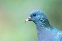 Zijportret van een holenduif, ofwel 'Columba oenas'. Deze soort wordt holenduif genoemd omdat hij zijn nesten in onder andere boomholtes en rotsgaten maakt. De holenduif heeft donkergrijze veren en kan maximaal 32 centimeter lang worden. Zijn maximale gewicht bedraagt 300 gram. Hij is met zijn paars-groene vlek in zijn hals…
