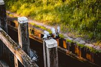 Je ziet ze hier op een paar balken in het kanaal zitten.