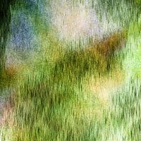 Abstract digitaal schilderij met levendige en heldere groentinten. Complexe texturen en kleurdiepte, roepen emotie op en creëren een betoverend effect.