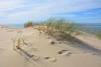 Het hoogste punt van Dune du Pilat in het zuidwesten van Frankrijk. Deze duin is de grootste duin van heel Europa en een grote toeristische trekpleister aan de kust bij Bordeaux. Wandel over de hoogste duin en geniet van het uitzicht over de Atlantische oceaan.