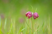 Twee zeldzame kievitsbloemen in tussen het gras.