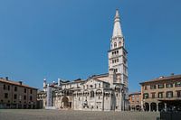 De mooie witte kathedraal van Modena in Italie. ietsje scheve toren, maar niet zoals die in Pisa.