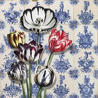 Een Hollands plaatje zo, deze collage met foto van antieke (Delfts) blauwe tegels en door een oude meester geschilderde tulpen.