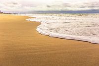 Herfstdag op het strand van scheveningen prachtige wolkenlucht, zee, strand en harde wind.