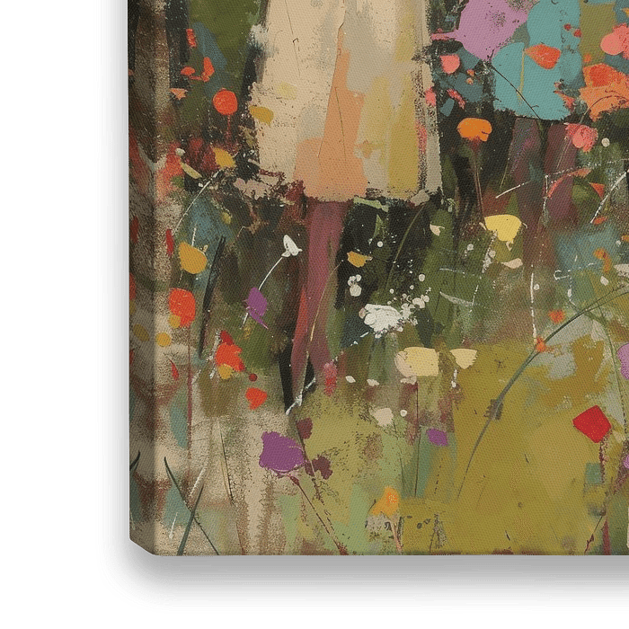 Dwalen in een veld vol bloemen, kleurrijk portret van drie vrouwen. Een bijzondere blikvanger voor je interieur! Kies zelf het formaat en materiaal bij dit werk.