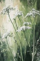 In Dwarrelende Bloei in Zacht Groen ontvouwt zich een verfijnd spel van lichtheid en beweging. Slanke, groene stengels rijzen elegant op vanuit een abstracte achtergrond van groen, wit en beige. Ze zijn met zorg en subtiliteit neergezet, waardoor ze zowel kracht als fragiliteit uitstralen. Hun verticale ritme geeft het werk houvast en…