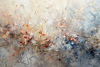 Dynamiek in Grijs | Abstracte Energie - Dit dynamische abstracte werk speelt met de balans tussen zachtheid en energie. Grijstinten vormen een vredige achtergrond, terwijl accenten van oranje en blauw de scene tot leven brengen. De zwevende vormen lijken bijna organisch te bewegen en creëren een intrigerend dieptegevoel.