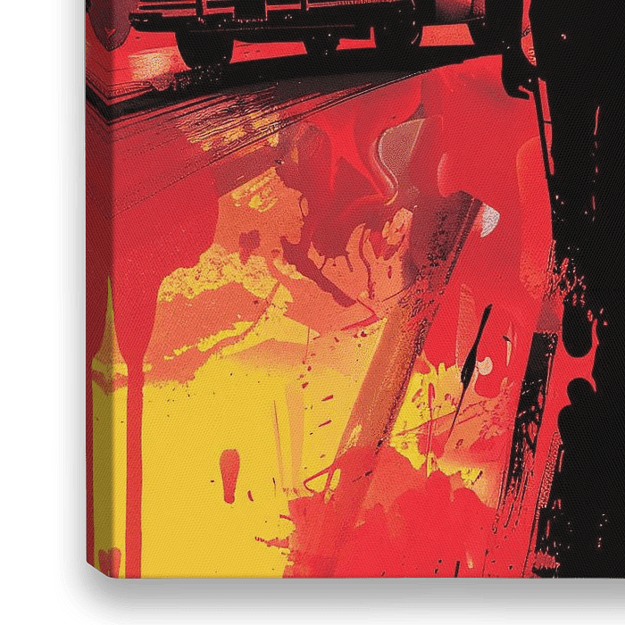 Dit spraakmakende ontwerp brengt de energie en het ritme van de stad tot leven met zijn levendige kleuren en dynamische composities. De combinatie van stedelijke elementen zoals klassieke autos en silhouetten van voorbijgangers, gevat in een eplosie van kleurrijke verfspatten, roept een gevoel van beweging en levendigheid op. Het…