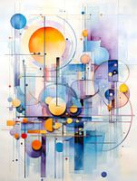 Een abstract schilderij vol dynamische vormen en kleuren is een visueel feest voor de ogen en biedt een zintuiglijke ervaring die rechtlijnige interpretatie tart. Het doek is een levendige speeltuin waar geometrische en organische vormen dansen en op elkaar inwerken, waardoor een gevoel van beweging en diepte ontstaat. Gedurfde, verzadigde kleuren zoals elektrisch blauw, vurig rood en lichtgevend geel botsen en harmoniëren op onverwachte manieren en dagen de waarneming en emoties van de kijker uit. Door de afwezigheid van herkenbare figuren of objecten worden de vormen en kleuren zelf het onderwerp, wat uitnodigt tot meerdere lagen van betekenis en interpretatie. Over het geheel genomen dient het schilderij als een verkenning van vorm, kleur en emotie, waarbij traditionele artistieke grenzen worden overschreden om een viscerale reactie op te roepen.