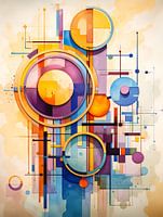 Een abstract schilderij vol dynamische vormen en kleuren is een visueel feest voor de ogen en biedt een zintuiglijke ervaring die rechtlijnige interpretatie tart. Het doek is een levendige speeltuin waar geometrische en organische vormen dansen en op elkaar inwerken, waardoor een gevoel van beweging en diepte ontstaat. Gedurfde, verzadigde kleuren zoals elektrisch blauw, vurig rood en lichtgevend geel botsen en harmoniëren op onverwachte manieren en dagen de waarneming en emoties van de kijker uit. Door de afwezigheid van herkenbare figuren of objecten worden de vormen en kleuren zelf het onderwerp, wat uitnodigt tot meerdere lagen van betekenis en interpretatie. Over het geheel genomen dient het schilderij als een verkenning van vorm, kleur en emotie, waarbij traditionele artistieke grenzen worden overschreden om een viscerale reactie op te roepen.