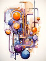 Een abstract schilderij vol dynamische vormen en kleuren is een visueel feest voor de ogen en biedt een zintuiglijke ervaring die rechtlijnige interpretatie tart. Het doek is een levendige speeltuin waar geometrische en organische vormen dansen en op elkaar inwerken, waardoor een gevoel van beweging en diepte ontstaat. Gedurfde, verzadigde kleuren zoals elektrisch blauw, vurig rood en lichtgevend geel botsen en harmoniëren op onverwachte manieren en dagen de waarneming en emoties van de kijker uit. Door de afwezigheid van herkenbare figuren of objecten worden de vormen en kleuren zelf het onderwerp, wat uitnodigt tot meerdere lagen van betekenis en interpretatie. Over het geheel genomen dient het schilderij als een verkenning van vorm, kleur en emotie, waarbij traditionele artistieke grenzen worden overschreden om een viscerale reactie op te roepen.