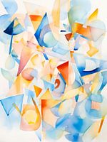 Een abstract schilderij vol dynamische vormen en kleuren is een visueel feest voor de ogen en biedt een zintuiglijke ervaring die rechtlijnige interpretatie tart. Het doek is een levendige speeltuin waar geometrische en organische vormen dansen en op elkaar inwerken, waardoor een gevoel van beweging en diepte ontstaat. Gedurfde, verzadigde kleuren botsen en harmoniëren op onverwachte manieren, waardoor de waarneming en emoties van de kijker worden uitgedaagd. Door de afwezigheid van herkenbare figuren of objecten worden de vormen en kleuren zelf het onderwerp, wat uitnodigt tot meerdere lagen van betekenis en interpretatie. Over het geheel genomen dient het schilderij als een verkenning van vorm, kleur en emotie, waarbij traditionele artistieke grenzen worden overschreden om een viscerale reactie op te roepen.