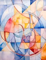 Een abstract schilderij vol dynamische vormen en kleuren is een visueel feest voor de ogen en biedt een zintuiglijke ervaring die rechtlijnige interpretatie tart. Het doek is een levendige speeltuin waar geometrische en organische vormen dansen en op elkaar inwerken, waardoor een gevoel van beweging en diepte ontstaat. Gedurfde, verzadigde kleuren botsen en harmoniëren op onverwachte manieren, waardoor de waarneming en emoties van de kijker worden uitgedaagd. Door de afwezigheid van herkenbare figuren of objecten worden de vormen en kleuren zelf het onderwerp, wat uitnodigt tot meerdere lagen van betekenis en interpretatie. Over het geheel genomen dient het schilderij als een verkenning van vorm, kleur en emotie, waarbij traditionele artistieke grenzen worden overschreden om een viscerale reactie op te roepen.