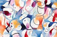 Een abstract schilderij vol dynamische vormen en kleuren is een visueel feest voor de ogen en biedt een zintuiglijke ervaring die rechtlijnige interpretatie tart. Het doek is een levendige speeltuin waar geometrische en organische vormen dansen en op elkaar inwerken, waardoor een gevoel van beweging en diepte ontstaat. Gedurfde, verzadigde kleuren zoals elektrisch blauw, vurig rood en lichtgevend geel botsen en harmoniëren op onverwachte manieren en dagen de waarneming en emoties van de kijker uit. Door de afwezigheid van herkenbare figuren of objecten worden de vormen en kleuren zelf het onderwerp, wat uitnodigt tot meerdere lagen van betekenis en interpretatie. Over het geheel genomen dient het schilderij als een verkenning van vorm, kleur en emotie, waarbij traditionele artistieke grenzen worden overschreden om een viscerale reactie op te roepen.