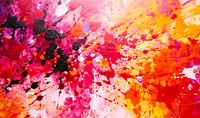 Een abstract schilderij vol dynamische vormen en kleuren is een visueel feest voor de ogen en biedt een zintuiglijke ervaring die rechtlijnige interpretatie tart. Het doek is een levendige speeltuin waar geometrische en organische vormen dansen en op elkaar inwerken, waardoor een gevoel van beweging en diepte ontstaat. Gedurfde, verzadigde kleuren zoals elektrisch blauw, vurig rood en lichtgevend geel botsen en harmoniëren op onverwachte manieren en dagen de waarneming en emoties van de kijker uit. Door de afwezigheid van herkenbare figuren of objecten worden de vormen en kleuren zelf het onderwerp, wat uitnodigt tot meerdere lagen van betekenis en interpretatie. Over het geheel genomen dient het schilderij als een verkenning van vorm, kleur en emotie, waarbij traditionele artistieke grenzen worden overschreden om een viscerale reactie op te roepen.