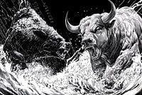 Koop dit landschapskunstwerk Dynamisch duel: stier en beer van Imperial Art House op canvas, aluminium dibond, (ingelijste) fotoprint, behang en ArtFrame, op maat geprint in Fine-Art kwaliteit.