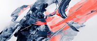 Energieke penseelstreken in diepblauw en vurig rood vertellen over beweging en passie. De harmonieuze spanning tussen de zachte en felle kleuren trekt alle blikken naar zich toe en brengt levendigheid in elke kamer. Dit kunstwerk is perfect voor een woonkamer en creëert een inspirerende sfeer die uitnodigt om te blijven hangen.