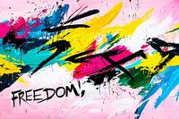 Dit abstracte ontwerp brengt energie en levendigheid in elke ruimte. De dynamische penseelstreken en heldere kleuren zoals roze, geel en blauw creëren een expressieve uitstraling. Het woord 'Freedom' springt eruit, wat een krachtige boodschap overbrengt. Perfect voor een moderne woonkamer, kantoor of creatieve ruimte. Laat je inspireren door de vrijheid en creativiteit die dit kunstwerk uitstraalt!